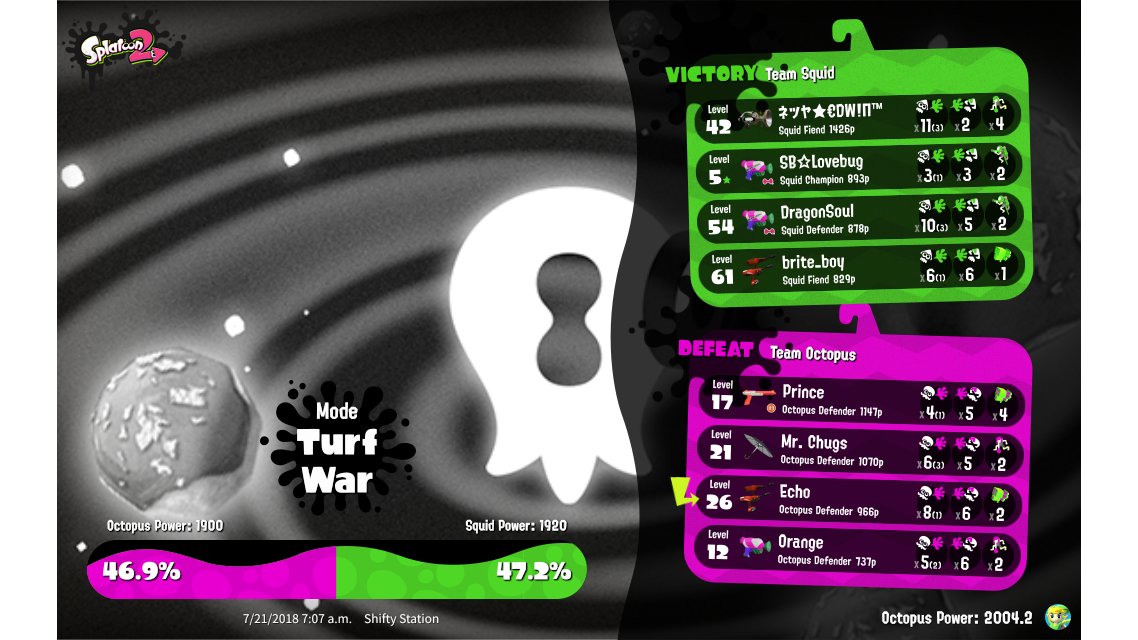 | Splatfest Power | 2,004.2 | |||||||||||||||||||||||||||||||||||||