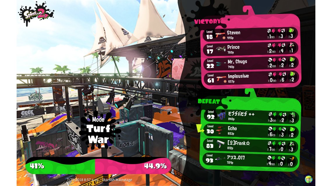| Mode | Turf War - Regular Battle | |||||||||||||||||||||||||||||||||||||