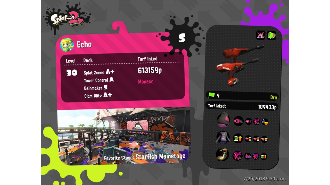 | Mode | Turf War - Regular Battle | |||||||||||||||||||||||||||||||||||||