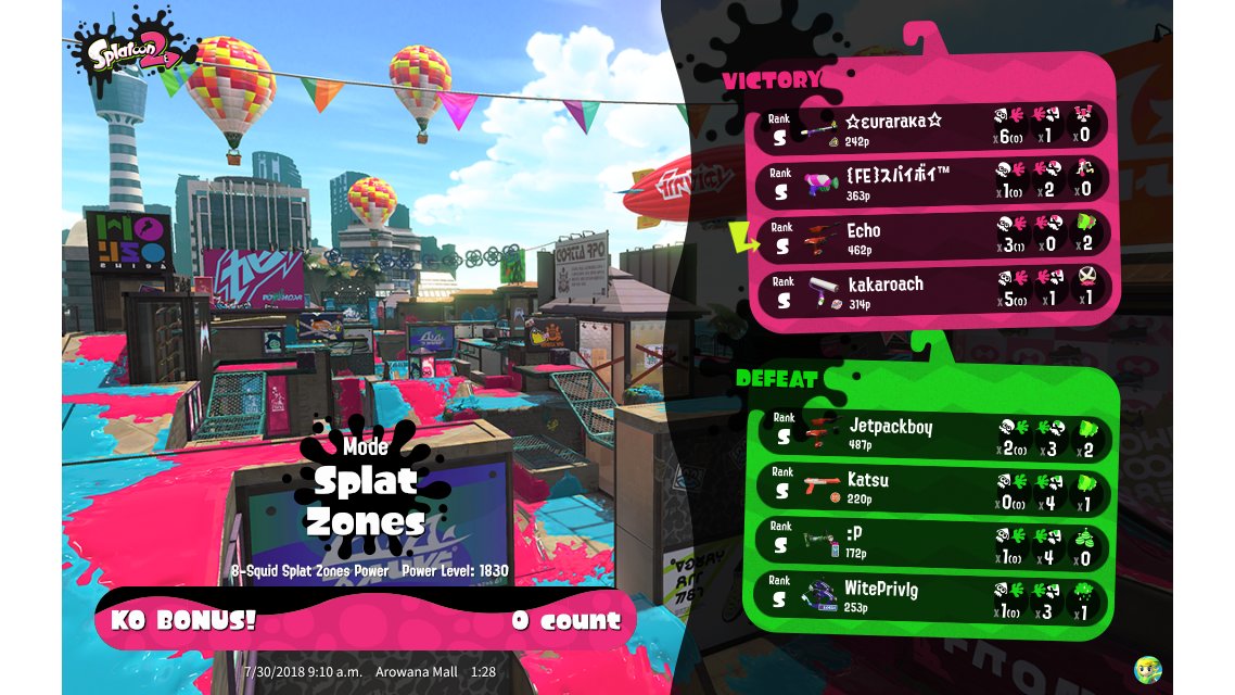 | Mode | Splat Zones - Ranked Battle | |||||||||||||||||||||||||||||||||||||