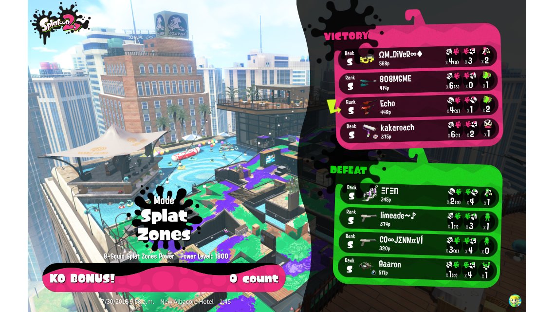| Mode | Splat Zones - Ranked Battle | |||||||||||||||||||||||||||||||||||||