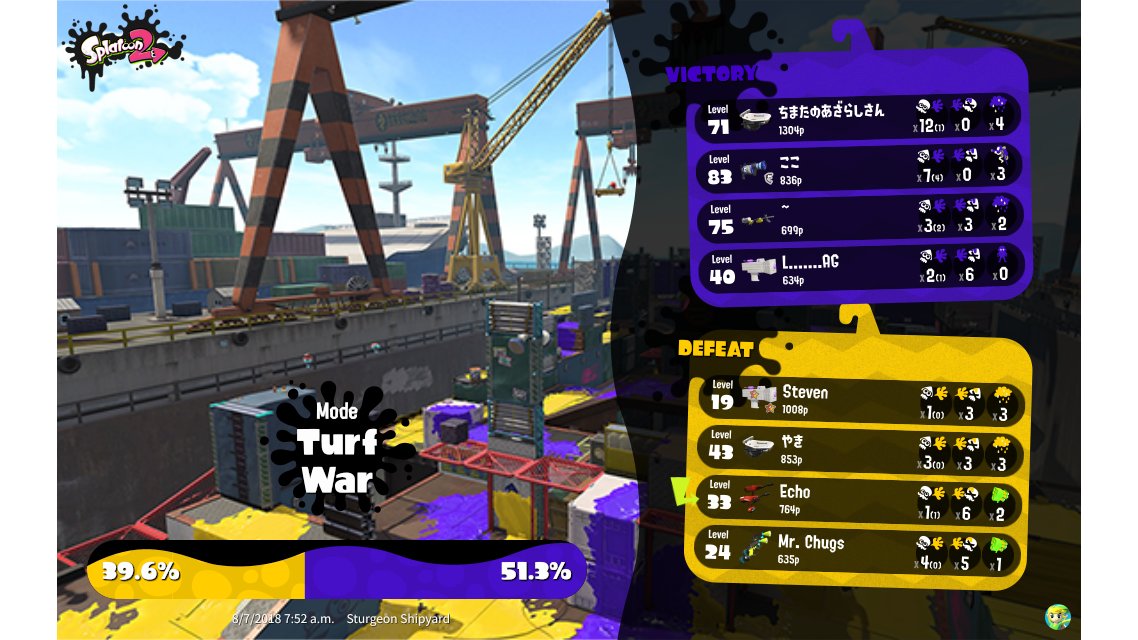 | Mode | Turf War - Regular Battle | |||||||||||||||||||||||||||||||||||||