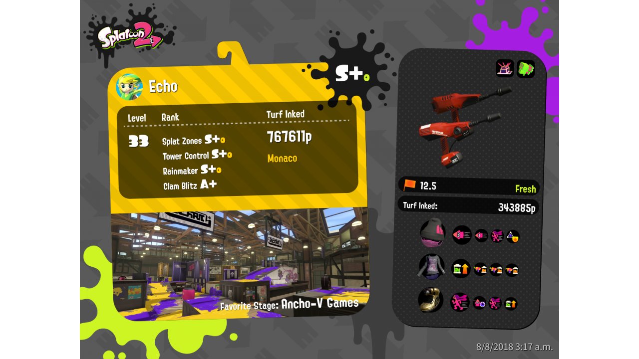 | Name | Weapon | Level | Rank | Inked | k+a/sp | k/d |