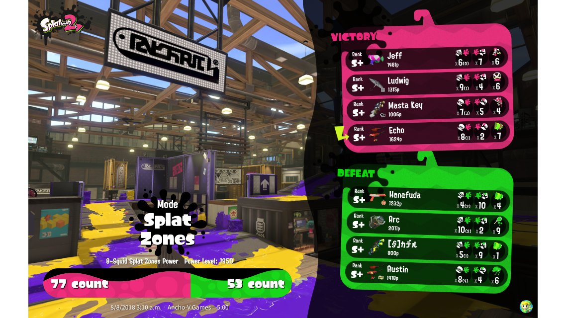 | Mode | Splat Zones - Ranked Battle | |||||||||||||||||||||||||||||||||||||