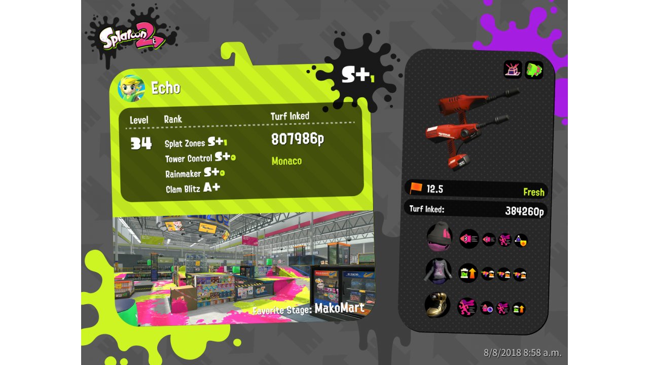 | Name | Weapon | Level | Rank | Inked | k+a/sp | k/d |
