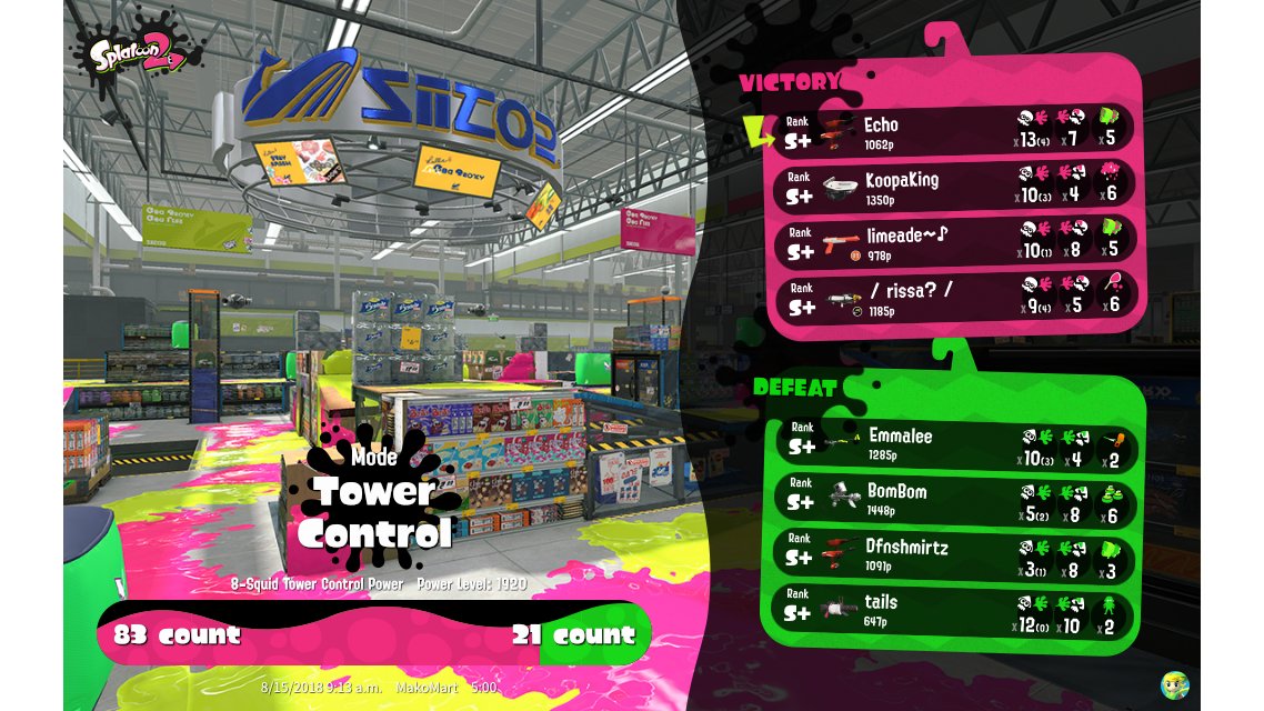 | Mode | Tower Control - Ranked Battle | |||||||||||||||||||||||||||||||||||||