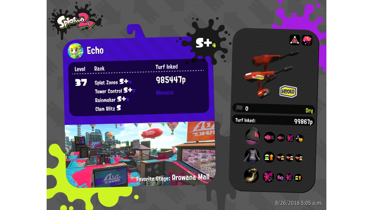 | Name | Weapon | Level | Rank | Inked | k+a/sp | k/d |