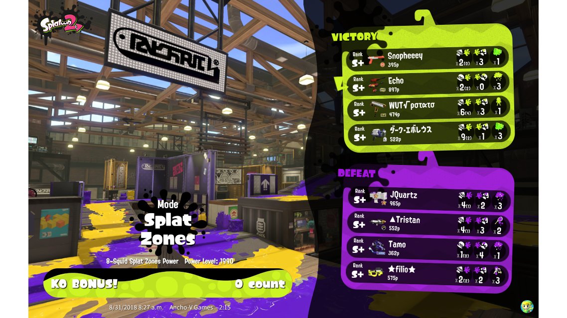 | Mode | Splat Zones - Ranked Battle | |||||||||||||||||||||||||||||||||||||