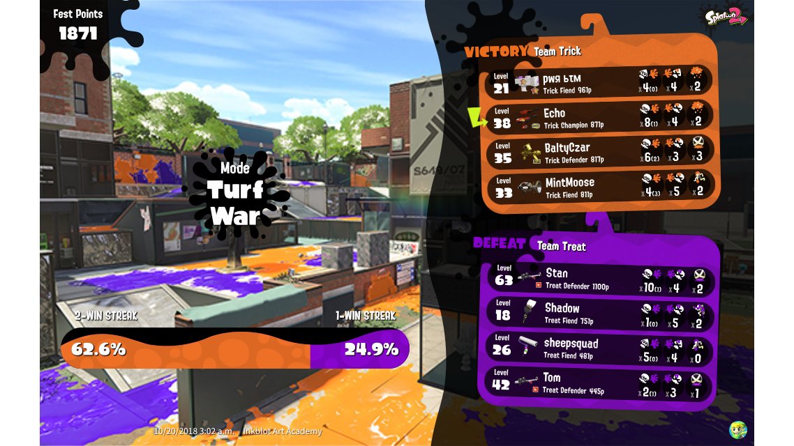 | Mode | Turf War - Splatfest (Normal) | |||||||||||||||||||||||||||||||||||||