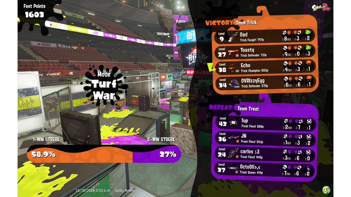 | Their team's splatfest power | 1,640 | ||||||||||||||||||||||||||||||||||