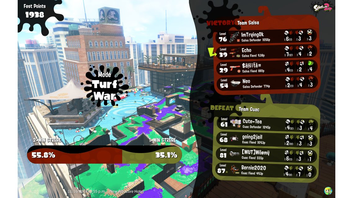 | Splatfest Title | Salsa Fiend 134 → Salsa Fiend 224 | ||||||||||||||||||||||||||||||||||