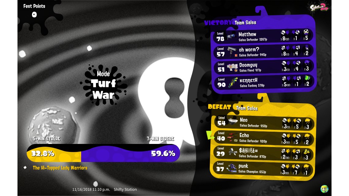 | Splatfest Title | Salsa Defender 208 → Salsa Defender 228 | ||||||||||||||||||||||||||||||||||