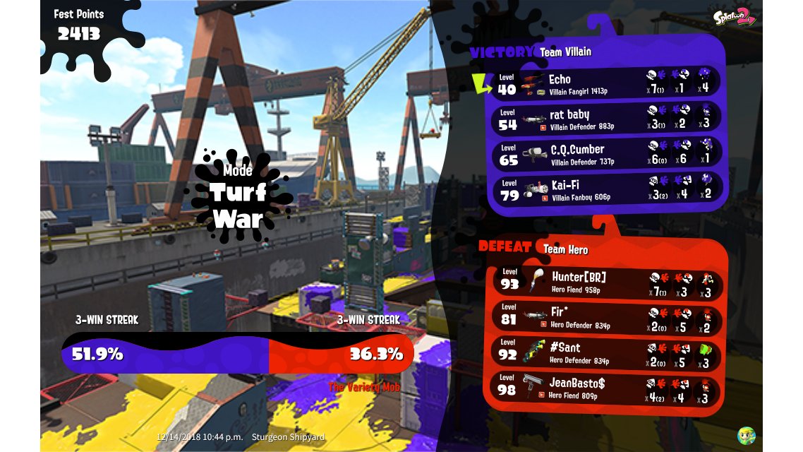 | Mode | Turf War - Splatfest (Normal) | |||||||||||||||||||||||||||||||