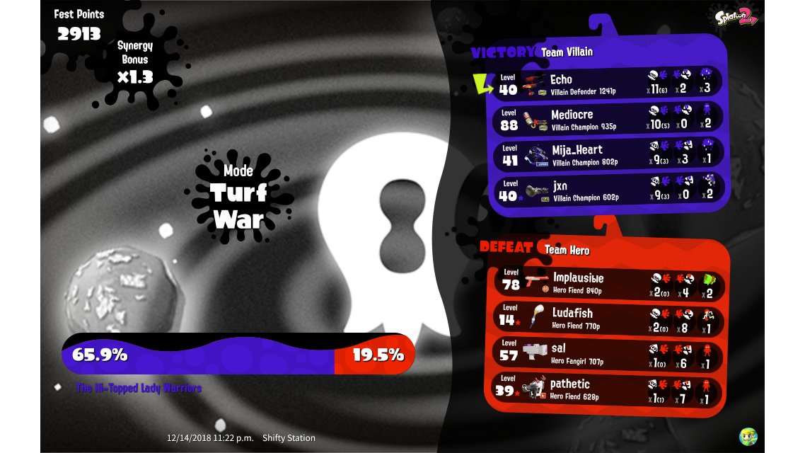 | Splatfest Title | Villain Defender 77 → Villain Defender 194 | |||||||||||||||||||||||||||||||