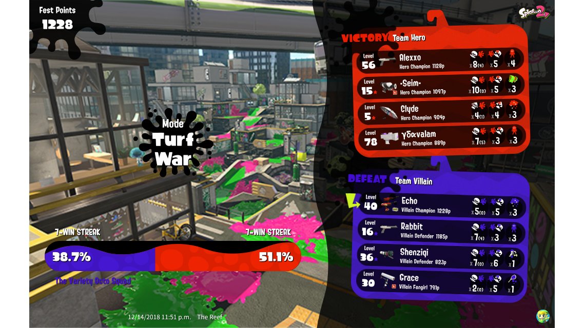 | Mode | Turf War - Splatfest (Normal) | ||||||||||||||||||||||||||||||||||
