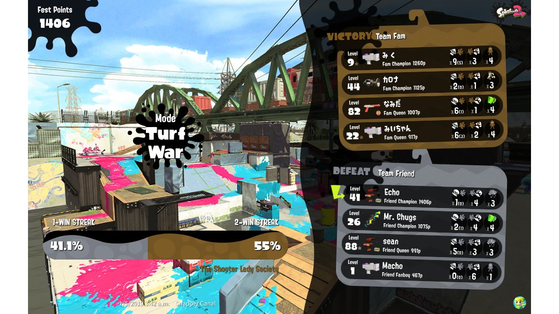 | Their team's splatfest power | 1,820 | |||||||||||||||||||||||||||||||