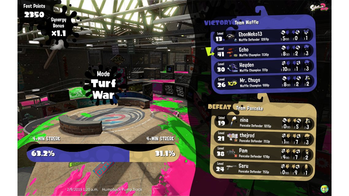 | Mode | Turf War - Splatfest (Normal) | ||||||||||||||||||||||||||||||||||||||||||||||