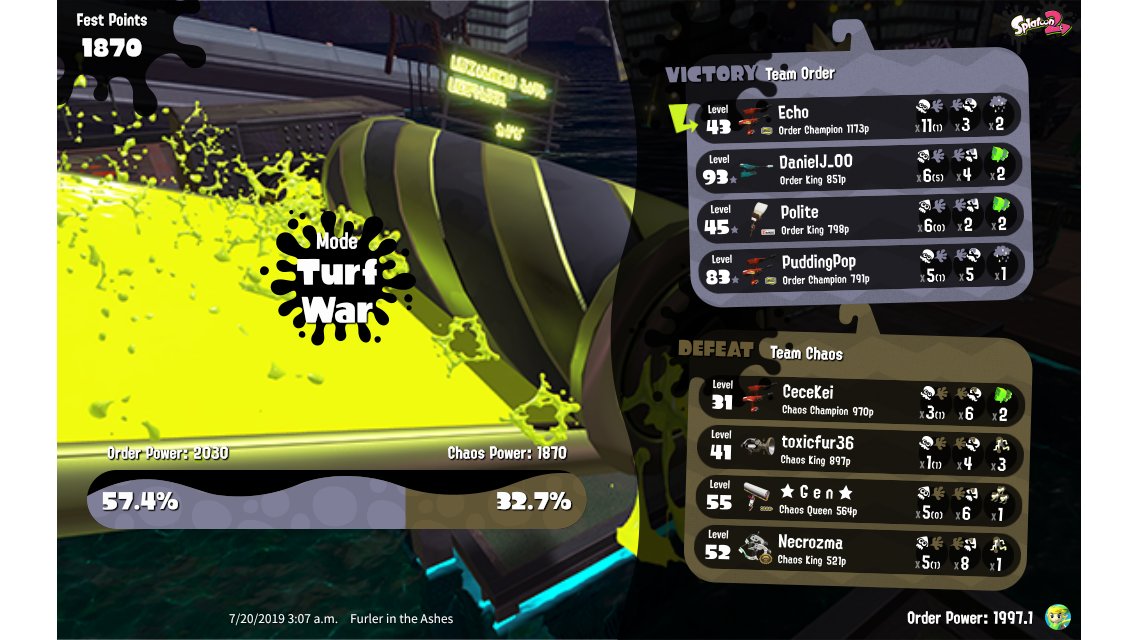 | Splatfest Power | 1,997.1 | |||||||||||||||||||||||||||||||||||||||||||