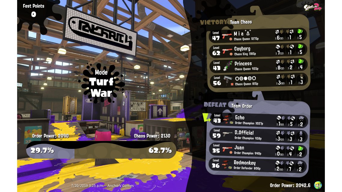 | Splatfest Title | Order Champion 650 → Order Champion 670 | |||||||||||||||||||||||||||||||||||||||||||
