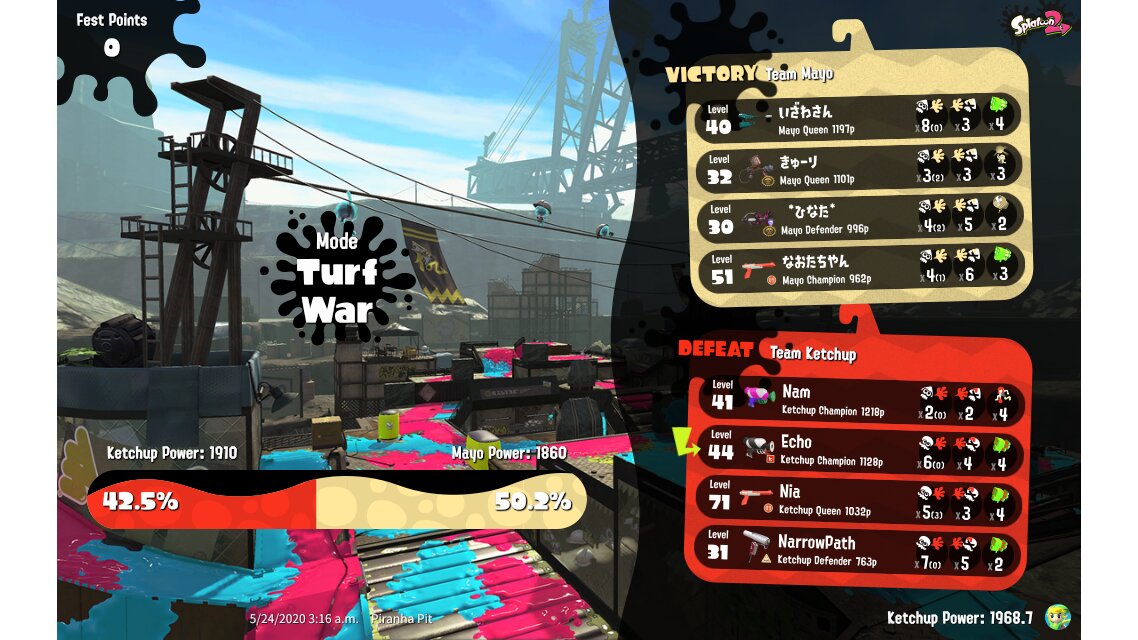 | Splatfest Power | 1,968.7 | |||||||||||||||||||||||||||||||||||||