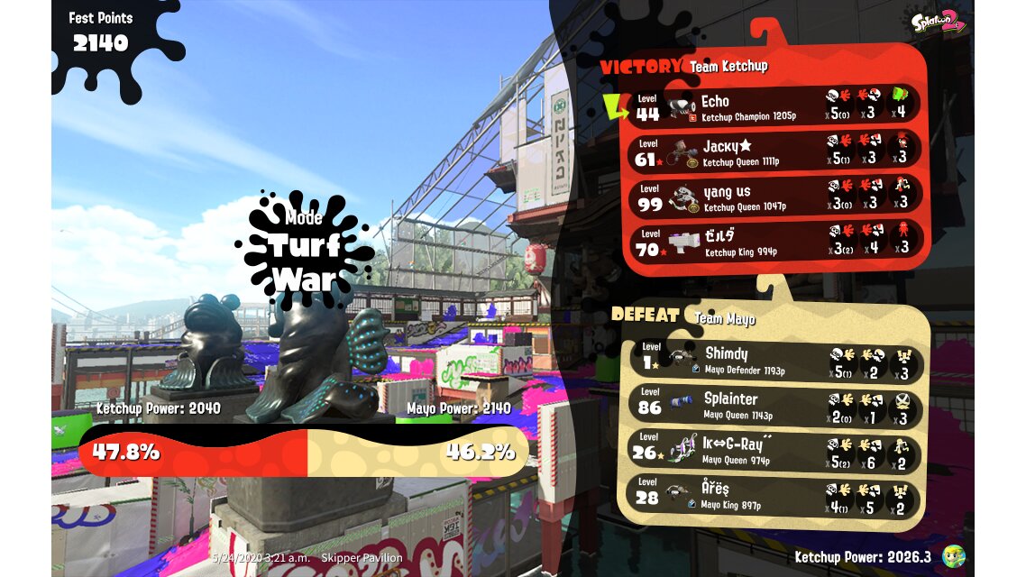 | Splatfest Title | Ketchup Champion 652 → Ketchup Champion 742 | |||||||||||||||||||||||||||||||||||||