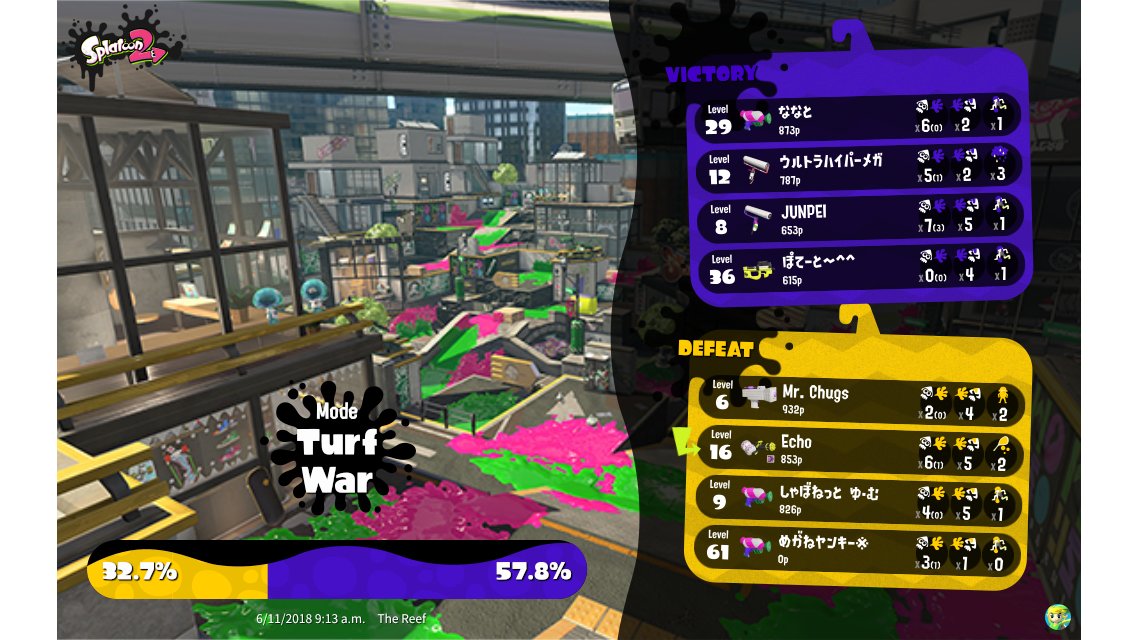 | Mode | Turf War - Regular Battle | ||||||||||||||||||||||||||||||||||||||||||||||