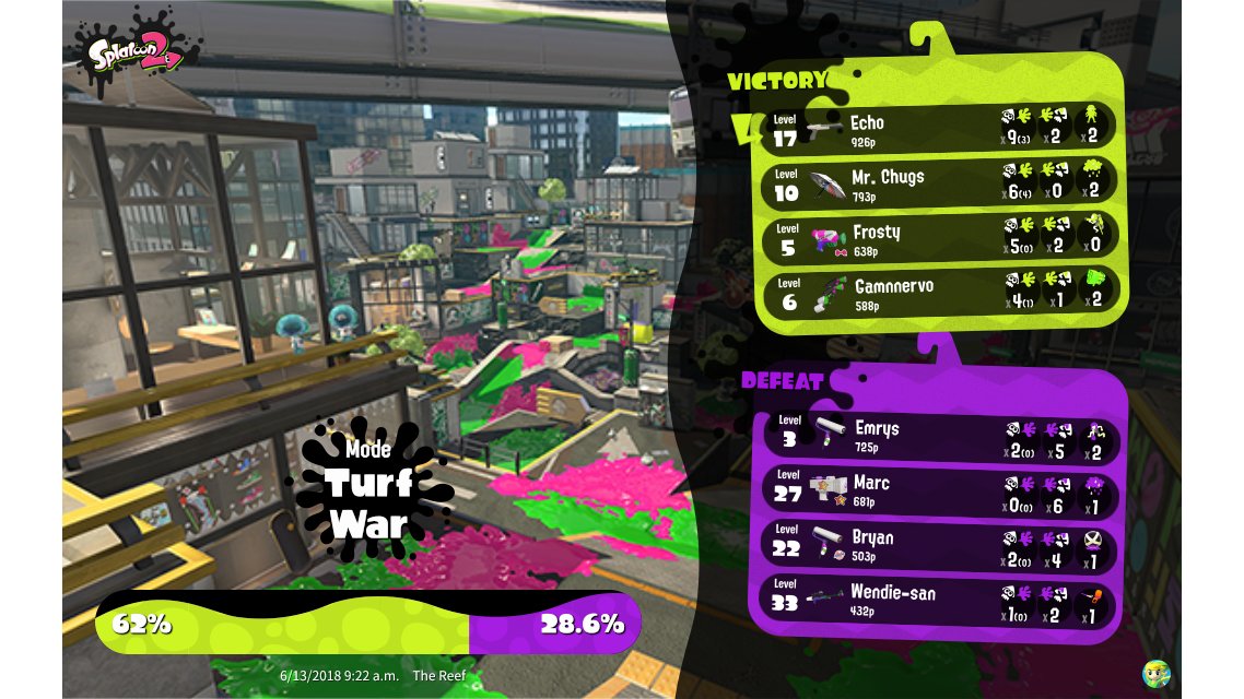 | Mode | Turf War - Regular Battle | |||||||||||||||||||||||||||||||||||||