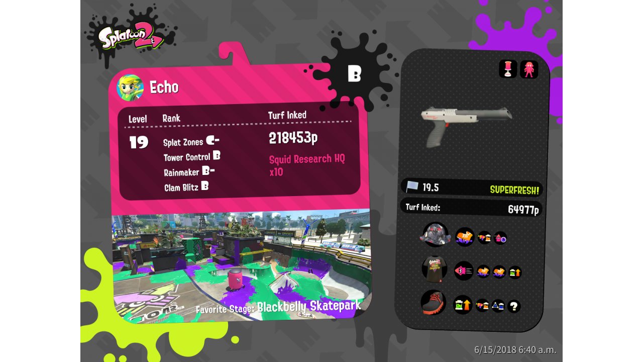| Weapon | N-ZAP '85 ( Suction Bomb, Ink Armor) | |||||||||||||||||||||||||||||||||||||
