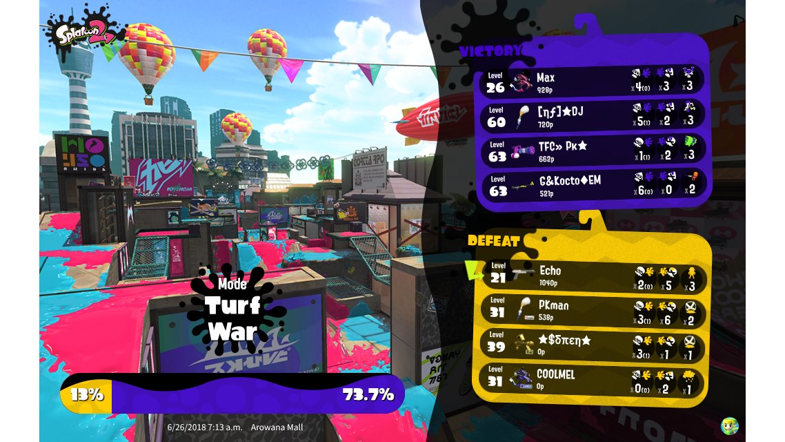 | Mode | Turf War - Regular Battle | |||||||||||||||||||||||||||||||||||||