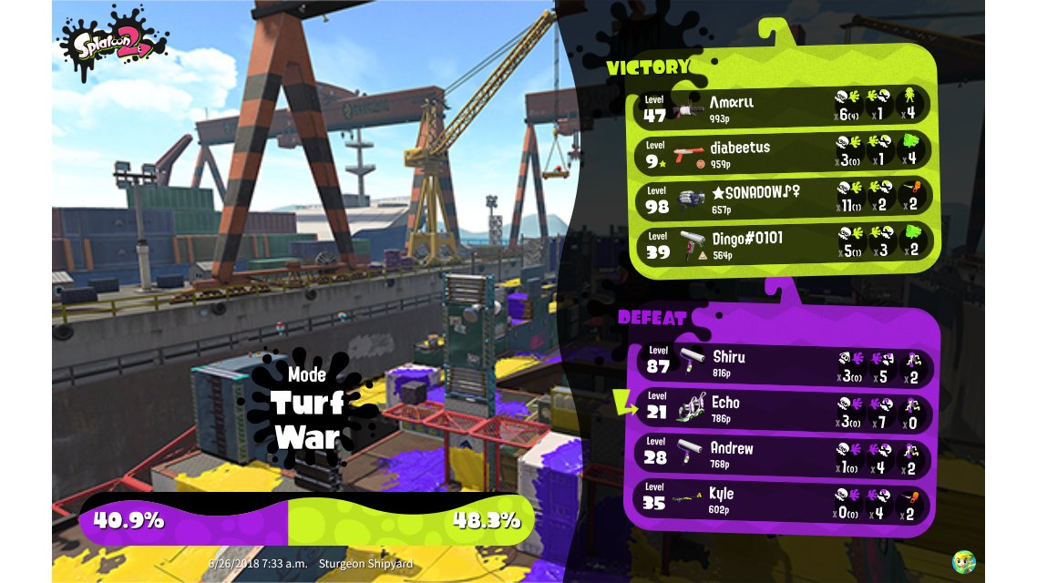 | Mode | Turf War - Regular Battle | |||||||||||||||||||||||||||||||||||||
