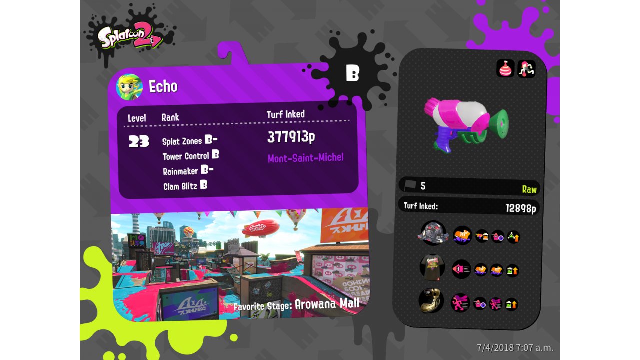 | Weapon | Splattershot ( Burst Bomb, Splashdown) | ||||||||||||||||||||||||||||||||||||||||