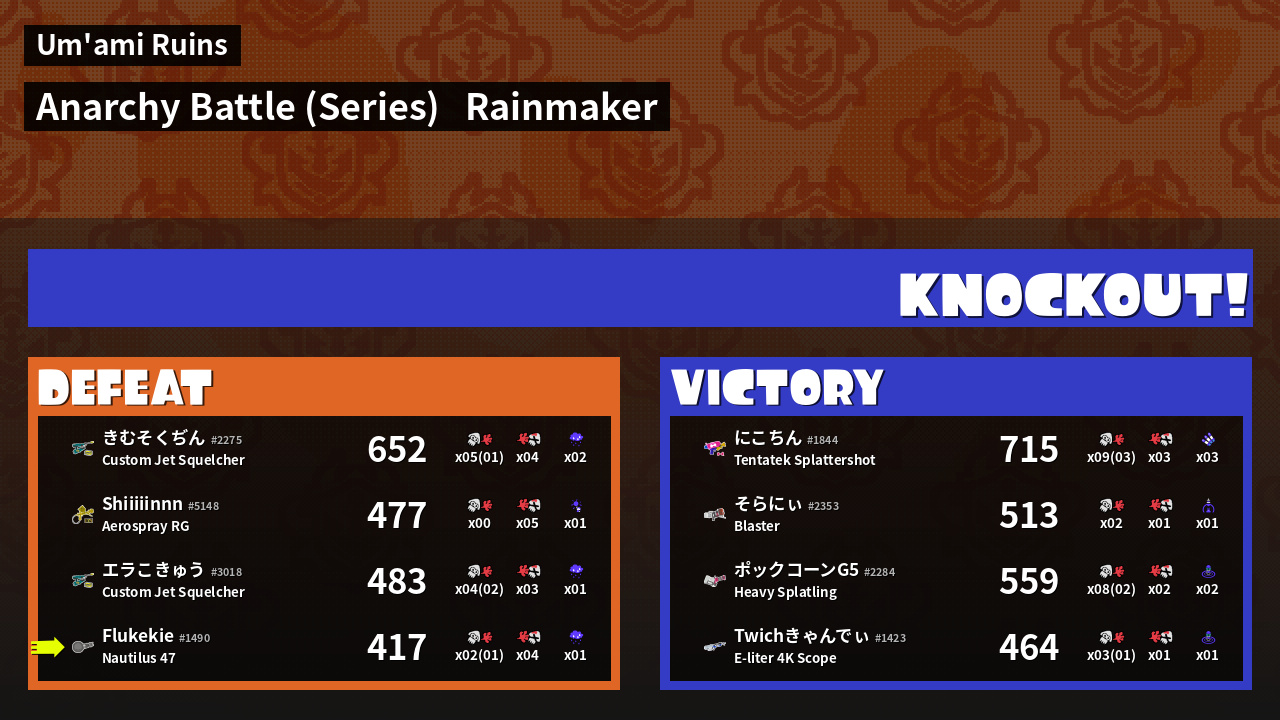 | Mode |    Rainmaker -   Anarchy Battle (Series) | ||