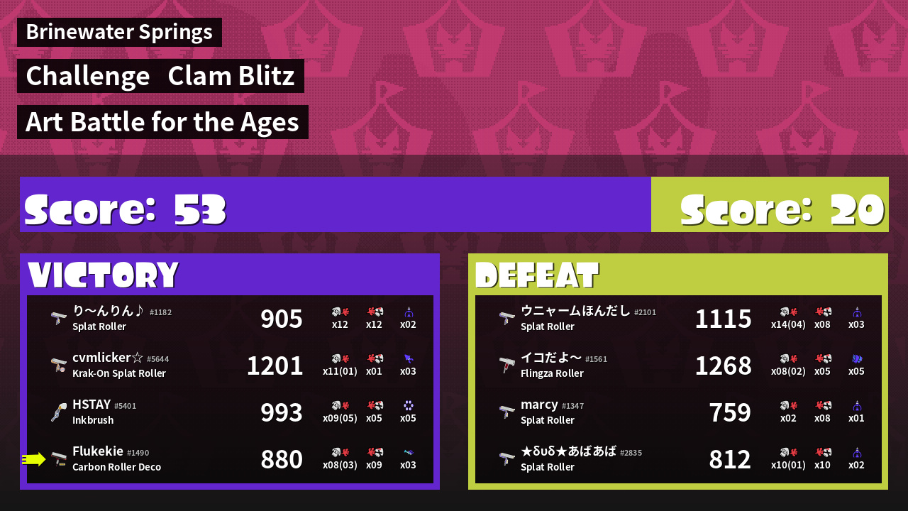 | Weapon | Carbon Roller Deco ( Burst Bomb / Trizooka) | ||