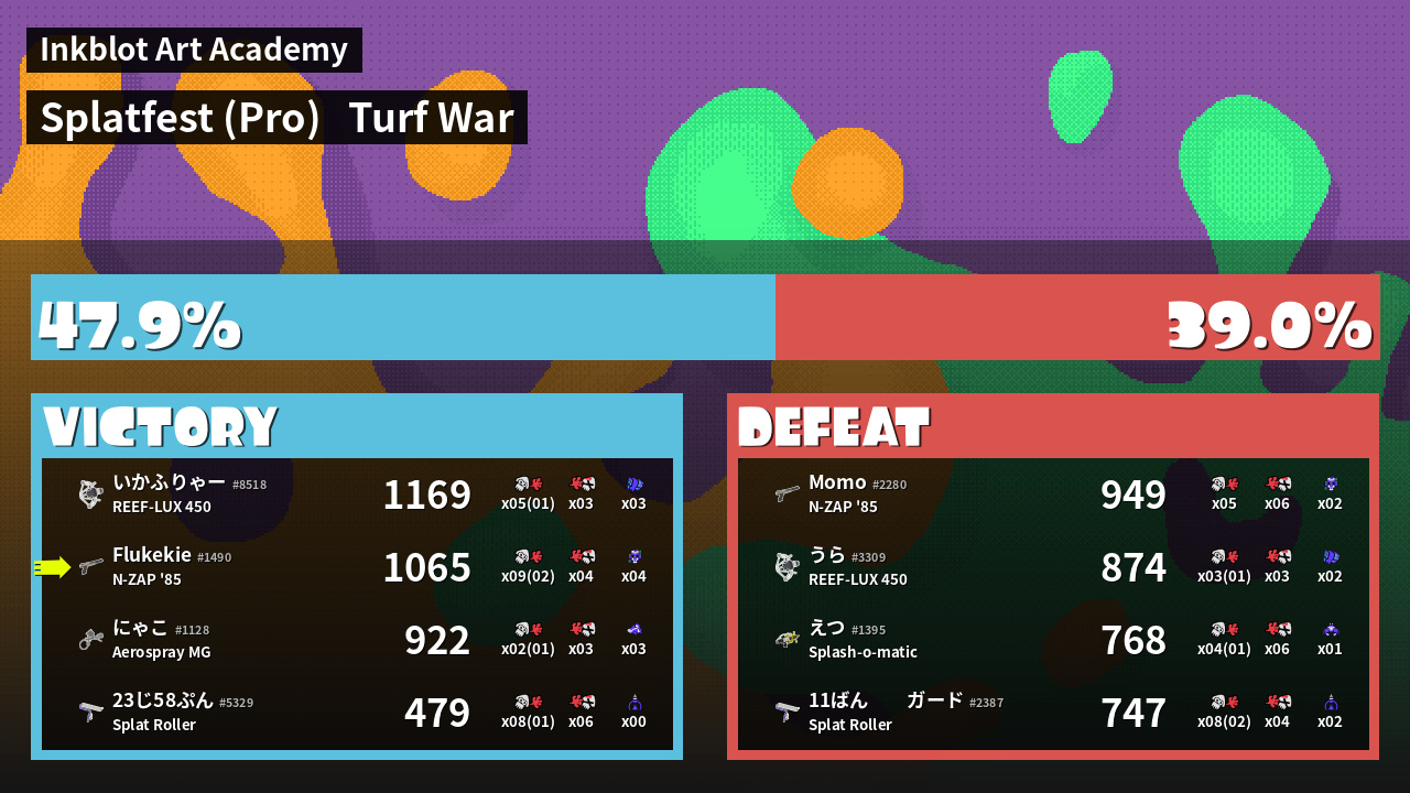 | Medals | #1 Overall Splatter #1 Enemy Splatter #1 Splat Assister | ||