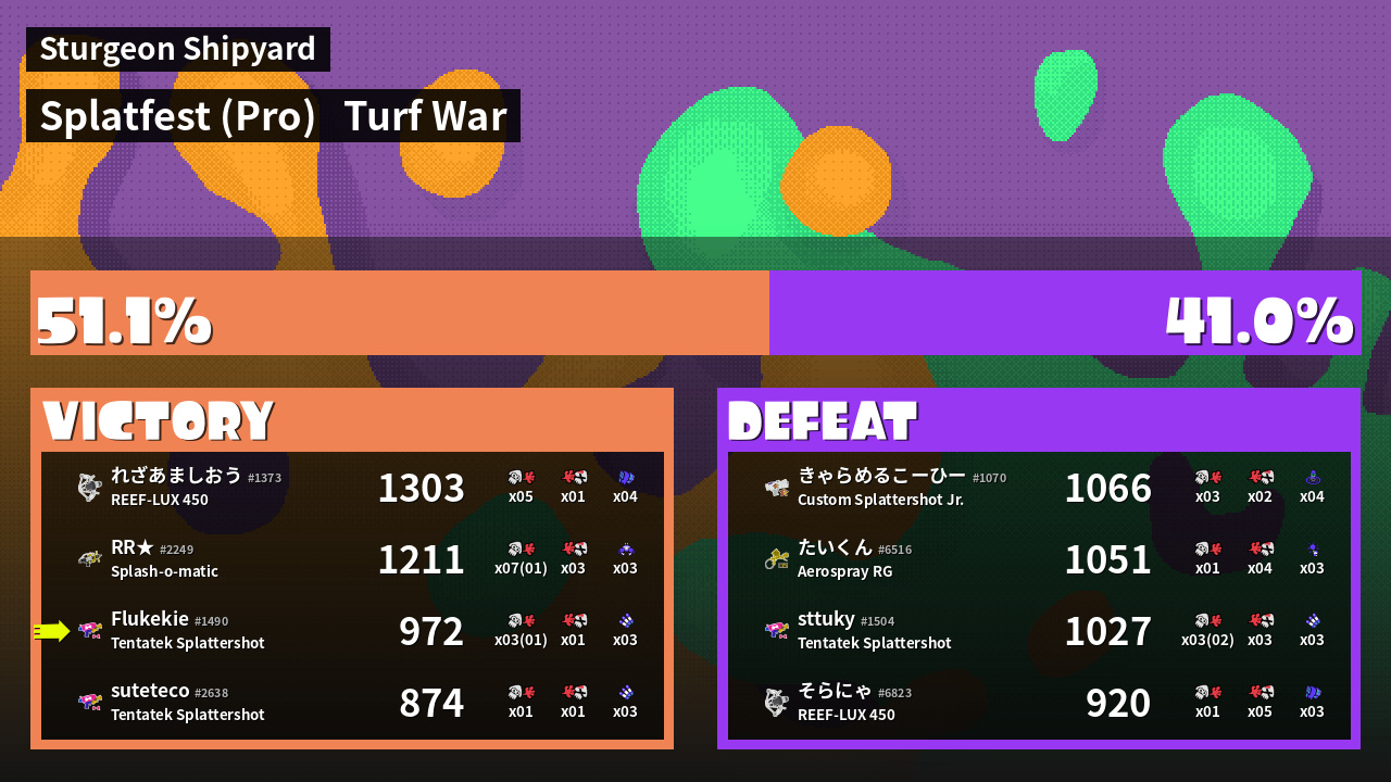 | Mode | Turf War - Splatfest (Pro) | ||