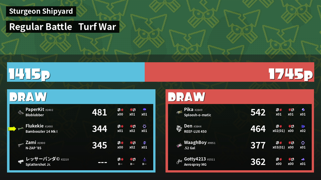 | Mode | Turf War - Regular Battle | ||