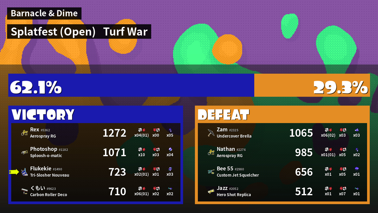 | Medals | #1 Splat Assister #1 Ink Consumer #1 Tacticooler User | ||