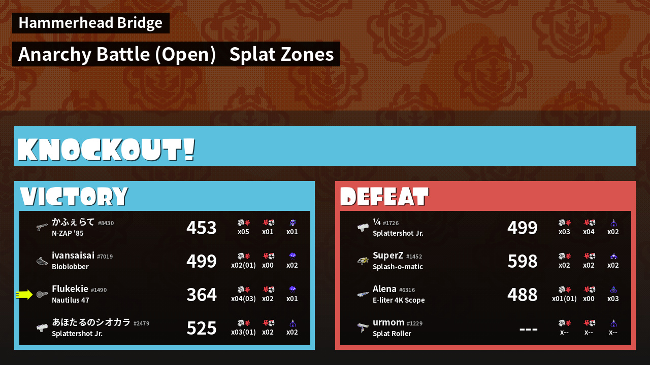 | Mode | Splat Zones - Anarchy Battle (Open) | ||