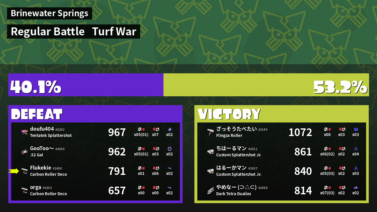 | Weapon | Carbon Roller Deco ( Burst Bomb / Trizooka) | ||