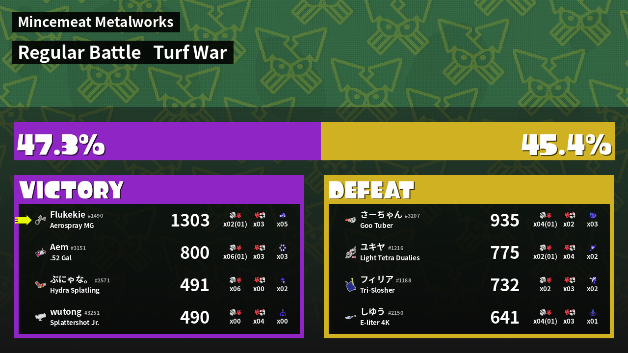 | Mode | Turf War - Regular Battle | ||