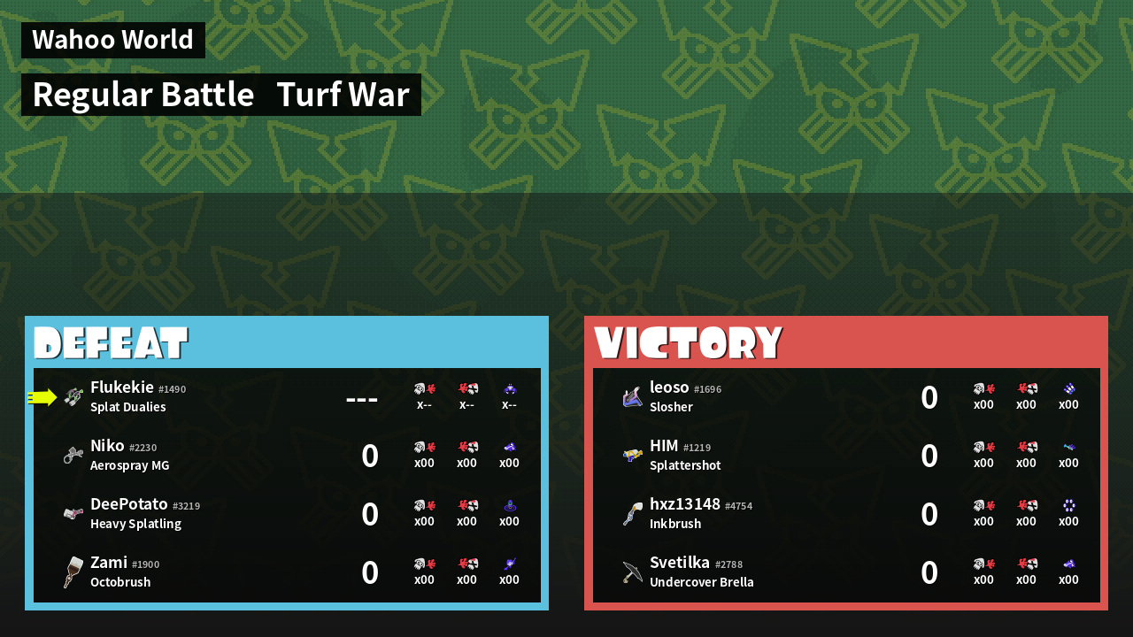 | Mode | Turf War - Regular Battle | ||