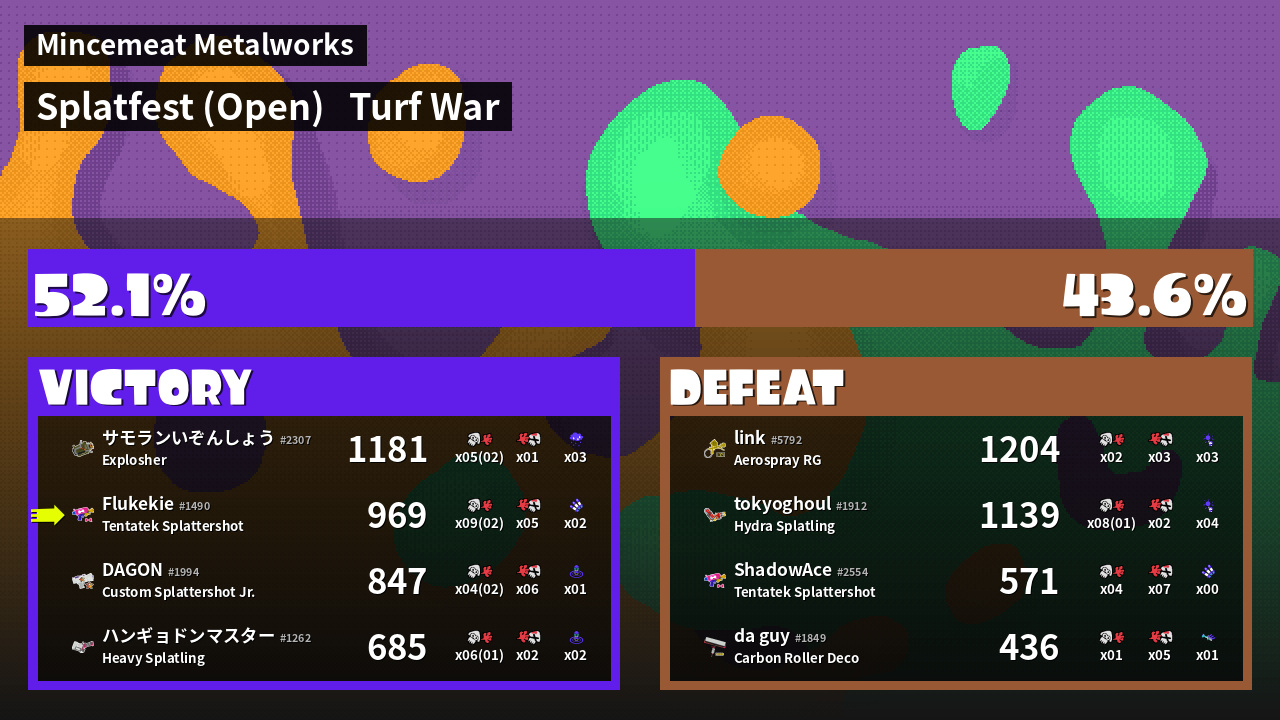 | Medals | #1 Overall Splatter #1 Enemy Splatter #1 Splat Assister | ||