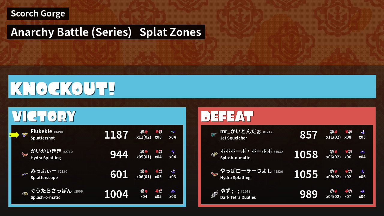 | Medals | #1 Overall Splatter #1 Splat Zone Guard #1 Turf Inker | ||