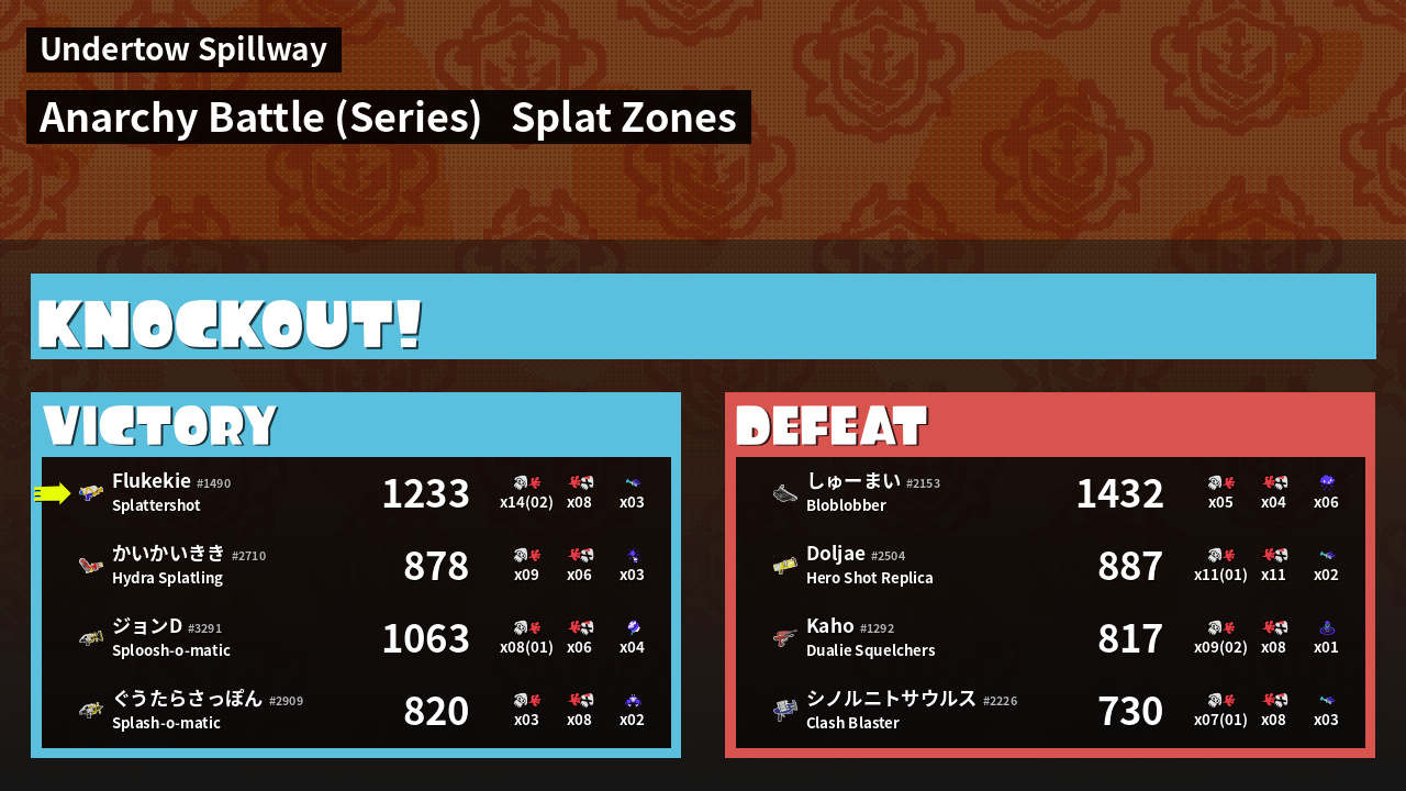 | Medals | #1 Overall Splatter #1 Splat Zone Guard #1 Turf Inker | ||
