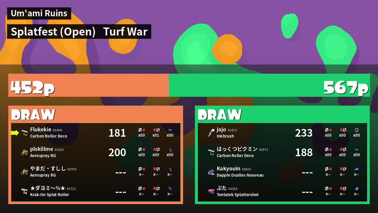 | Weapon | Carbon Roller Deco ( Burst Bomb / Trizooka) | ||