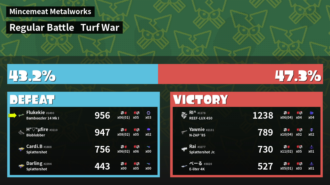 | Mode | Turf War - Regular Battle | ||