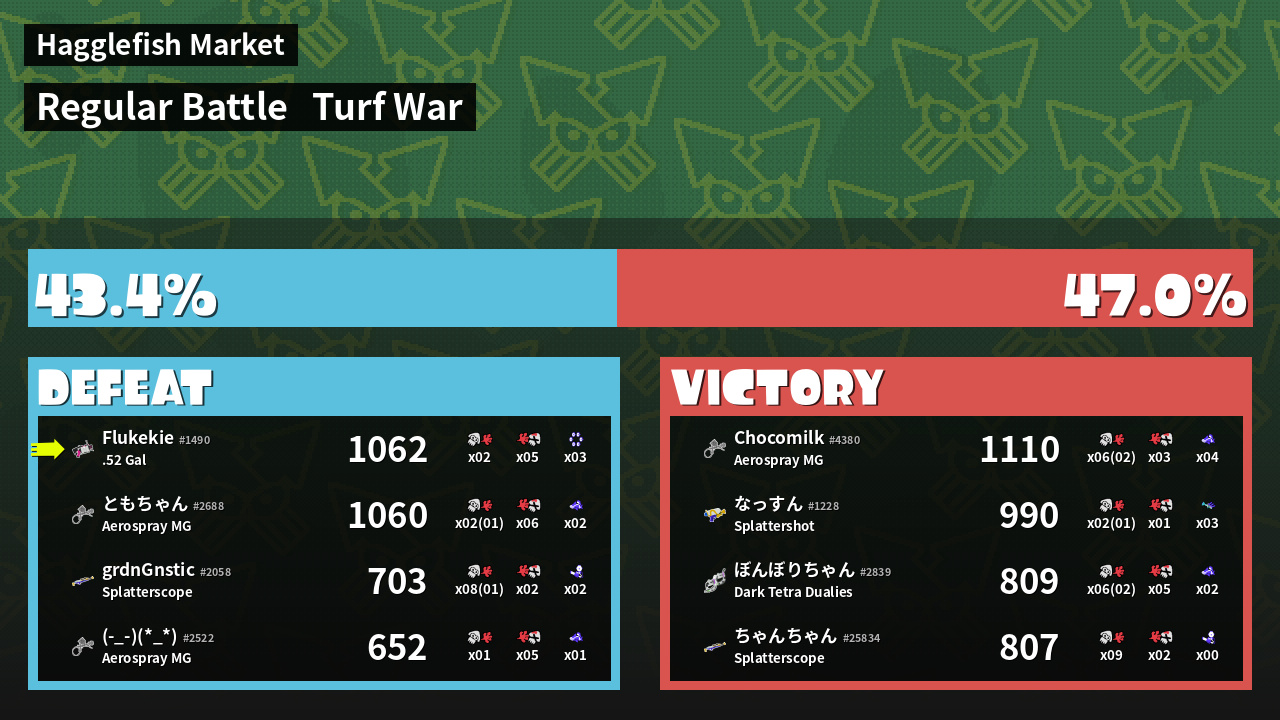 | Lively Seafood なっすん #1228 |  Splattershot                    | 990 | 1 + 1 | 1 | 1.00 |  3 | |
