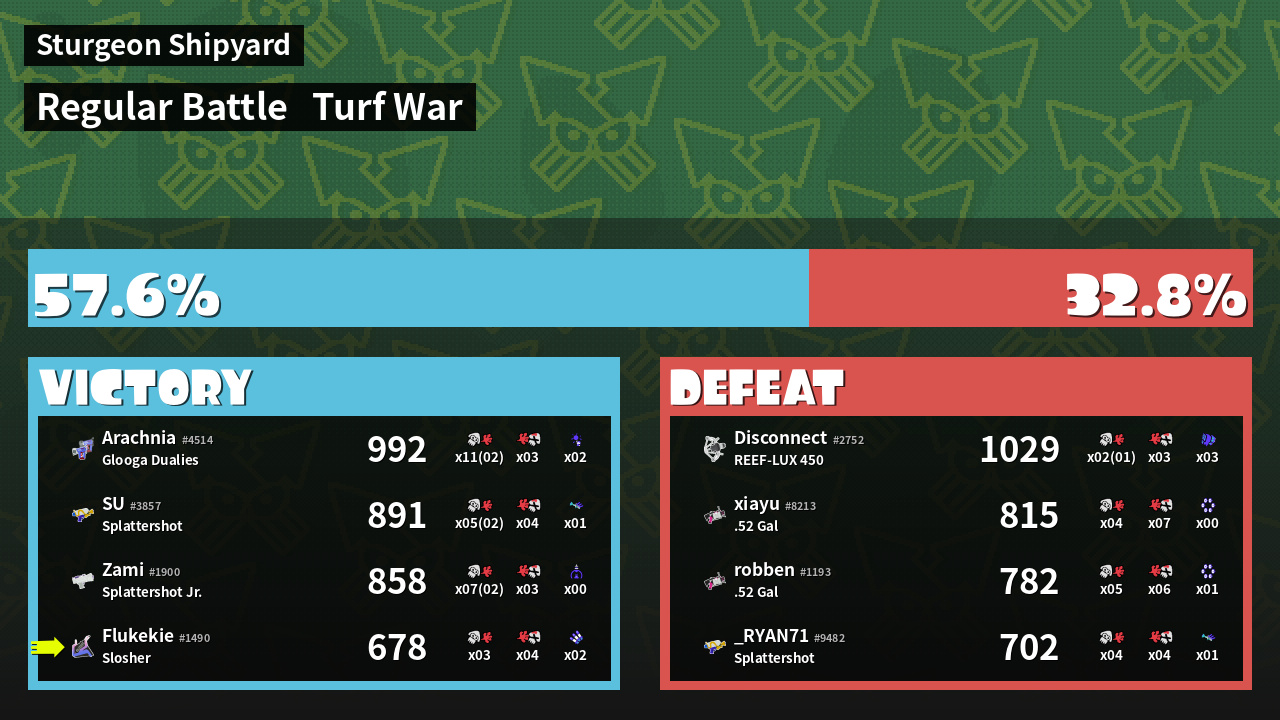 | Mode | Turf War - Regular Battle | ||