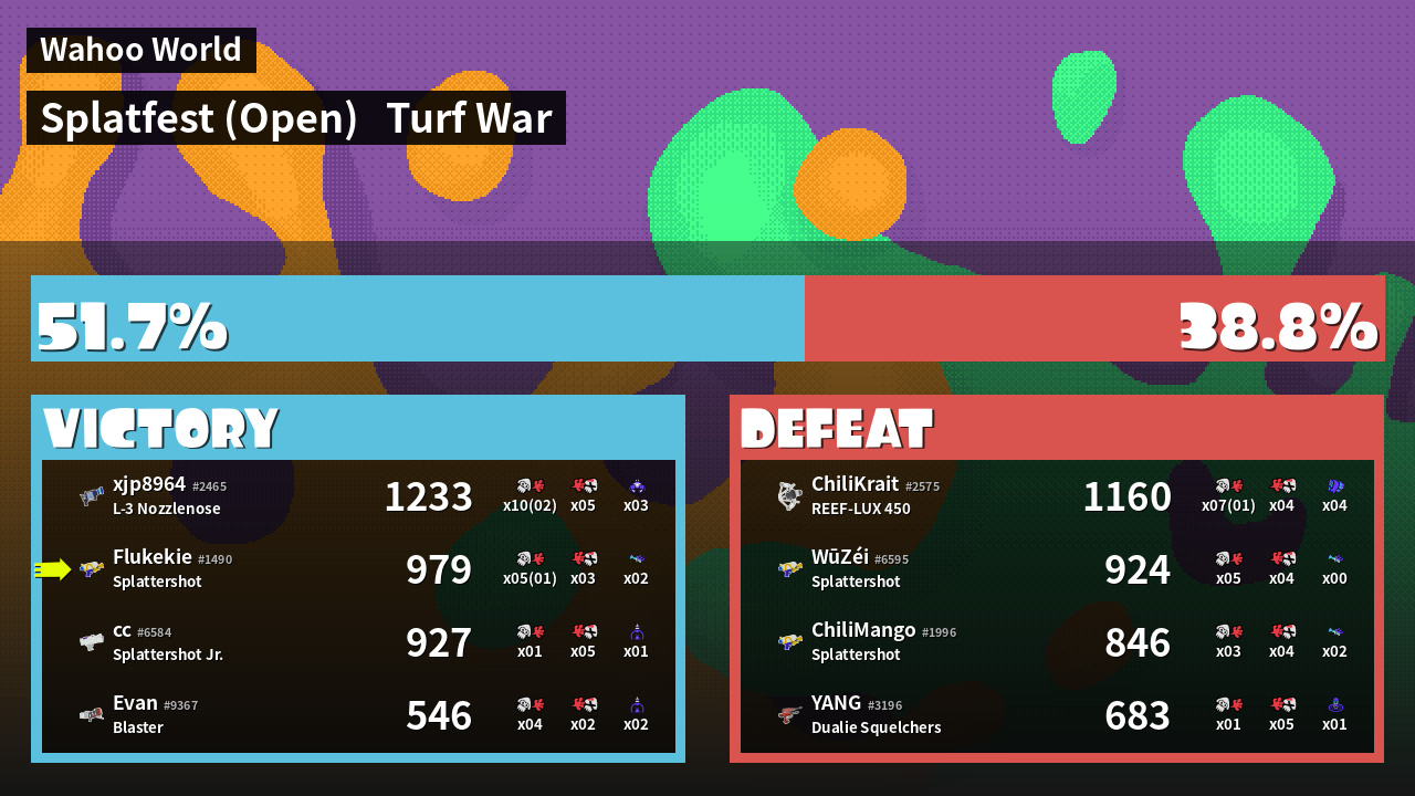 | Medals | #1 Base Defender #1 Trizooka User #2 Overall Splatter | ||