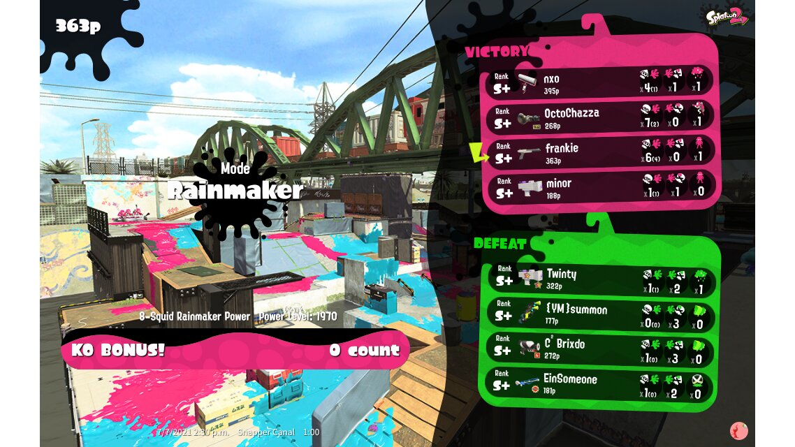 | Name | Weapon | Level | Rank | Inked | k+a/sp | k/d |